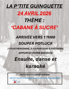 Participation : gratuite pour les membres, 10$ pour les non-membres